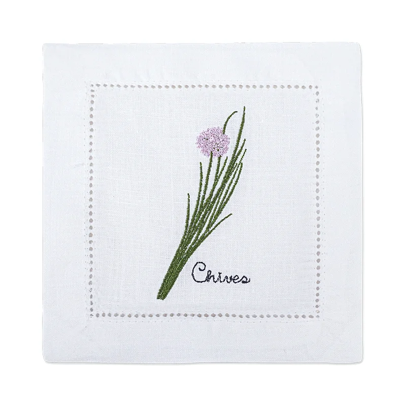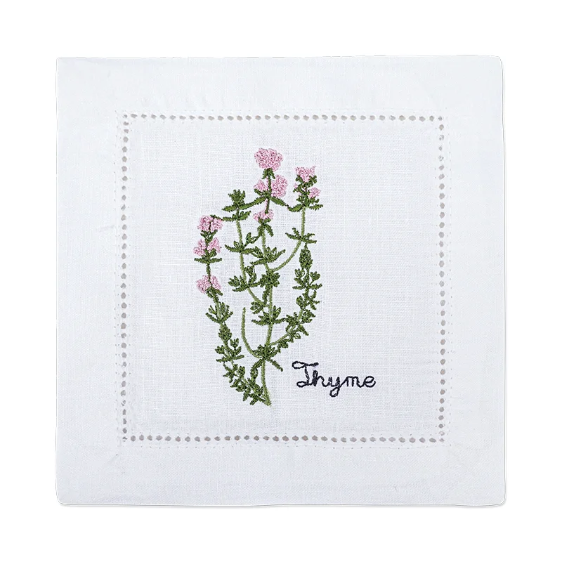 Embroidered Herb Cocktail Napkin